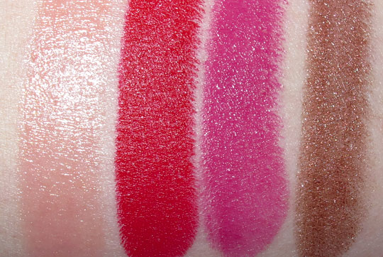 Lipsticks from the left to the right: Russian Red, Spitfire, Heroine and Marquise d’