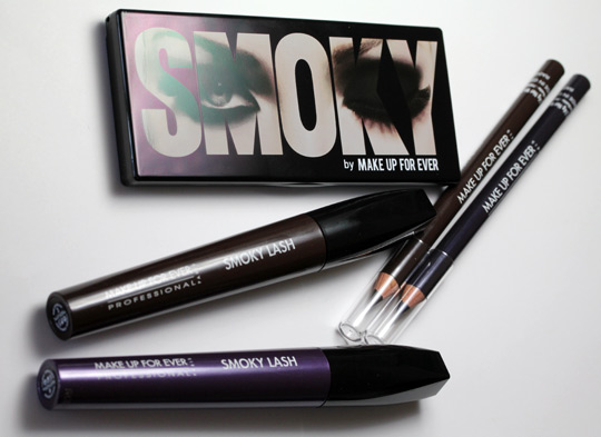 Swatches from the left: Aqua Cream in #13, Aqua Eyes LIner in #0L, Lab Shine in #S4, Smoky Lash Mascara, HD Microfinish Powder and HD Microperfecting Primer