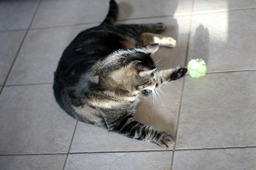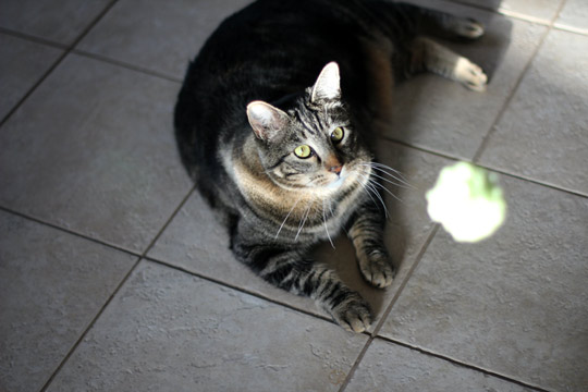 So in strolls Tabs, doopdadoo, and he has a seat on the floor directly in front of me, watching me like I’m reality television.