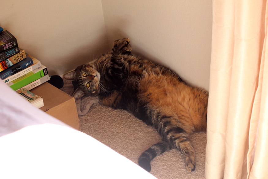 Oh! — almost forgot. Tabs always likes to share his kitty modeling exploits. Here are the most recent pics from his portfolio. 🙂