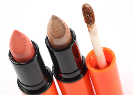 From the left: Lipstick in Pleasureseeker (Glaze); Lipstick in Sunsonic (Frost) and Lipglass in Supreme